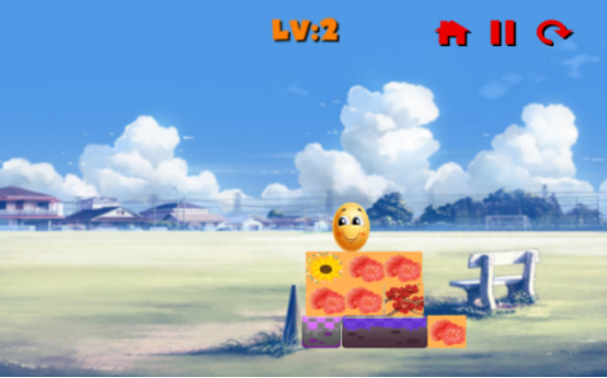 本作结合消除与跑酷元素,拥有丰富多样的关卡设计。开局画面会出现一颗悬浮的大鸡蛋以及布满花朵图案的彩色方块。玩家需滑动屏幕完成匹配消除,目标是让大鸡蛋平稳降落。然而在下落过程中,会随机出现石墙、断崖等阻碍,增加操作难度与策略性。
