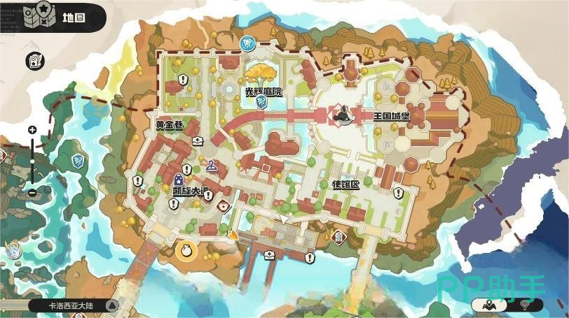 小游戏分布在各个城市区域,位置较为分散,其中凯旋大道附近的王国城堡就是主要聚集地之一。地图上以宝箱图标作为标识,便于识别。玩法核心通常是碎片收集类任务,玩家需先前往指定地点接取任务,随后根据提示在周围环境中寻找足够数量的碎片,完成收集即可获得奖励。