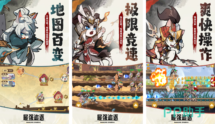 三国背景的跑酷射击手游,核心元素是各种萌萌的猫咪,大家要做的就是收集萌猫组建队伍,带着它们穿越不同的三国历史场景。跑的时候要躲开关卡里的各种特色障碍,顺便打败敌人,就能拿好多游戏奖励,还能给萌猫队伍升级变强。游戏里有好多不一样的赛道,每次跑都能有新体验,全程都是速度拉满的冒险感。每个关卡的障碍和奖励都不重样,大家要巧妙避开陷阱,多捡金币和道具,用最快速度冲过终点。