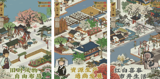 这一款游戏将明朝的江南作为主要大背景,会拥有着古风的元素。玩家将成为一名知府,在这个破败的小镇上,要重新建设,还需要安排居民干活,另外还可以解锁一系列历史人物,例如唐伯虎,还有沈周等。画风主要是以水墨写意风作为核心还会复刻寒山寺以及拙政园,看上去是比较有韵味的。游戏没有强制性的任务,大家可以慢慢的布局,还可以把民居建设在河边上。