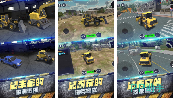 在这里大家可以去操控10多种专业的设备,大家要在这个逼真的建筑工地上工作,从挖地基开始,一直做到高楼盖起封顶,整个过程都需要大家来完成。它不只是一个模拟经营的游戏,还把工程机械操作台的功能布局做得非常棒,而且用了动态物理引擎,做出了非常真实的物料装卸等作业场景。大家在玩的时候,不仅可以放松,还可以学会工程机械的操作方法和基础的施工知识,慢慢的可以建出属于自己的现代化城市。
