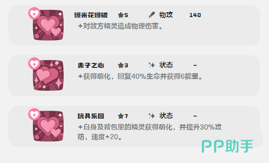 物理攻击技【超级糖果】,威力高达130,不仅能造成可观伤害,还能使目标进入“萌化”状态,干扰对手判断,同时提升自身部分技能的输出效果;
