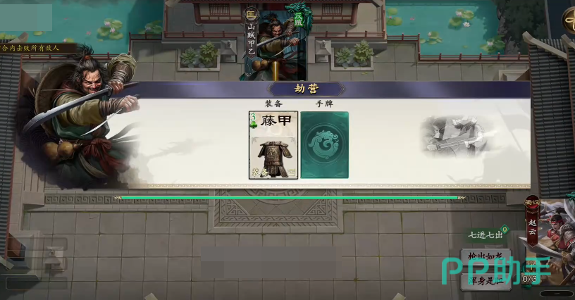 第七关对应卦象“师”,关键在于获取丈八蛇矛。通过使用【顺手牵羊】从山贼处夺取该武器后,对敌使用【杀】并触发“百步穿杨”效果,配合强命类技能可直接终结对手,整体流程简洁高效,属于基础操作训练关卡。