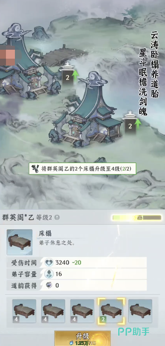 宗门里几个建筑需要优先进行升级——修炼堂负责生产突破境界所需的丹药以及强化装备的材料,是提升战斗力的坚实后勤保障。灵石是升级建筑、炼制丹药的通用货币,后期要用到货币购买丹药,提升境界在修仙游戏的重要性不用多提。