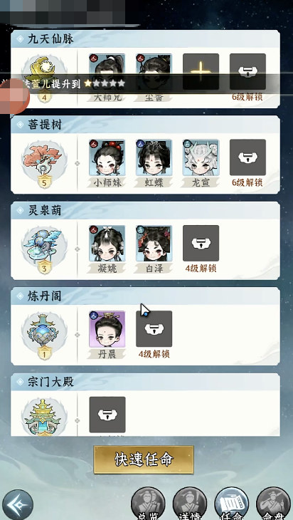 当掌门修炼到一定境界,比方如筑基升金丹的时,会遇到一些修炼瓶颈,卡在一个级别很难再上去。此时的办法只有需要炼制一定数量,特别是一些特定的用来突破的丹药。玩家这时候可以在炼丹房提前查看下一境界所需的丹药材料,记录下来,并在剧情关卡或商店中有意识地收集,另外再BOSS触同样可以获取丹药,但要注意对战是观察其释放技能前的动作,及时调整阵容或使用技能,才不会被打败。