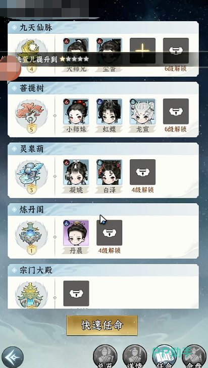 仙界大掌门攻略大全哪里找呢,在游戏初期,对于新手玩家来说,任务线繁杂,而且也不知道哪些任务必做,该怎么做,每日的日常任务是什么时候刷新,主线和新手教程对于萌新来说,是体验游戏必不可少的流程,今天小编就为仙界大掌门的新玩家朋友整理一篇攻略,大家一起来看看游戏初期中期有什么需要注意的地方吧!
