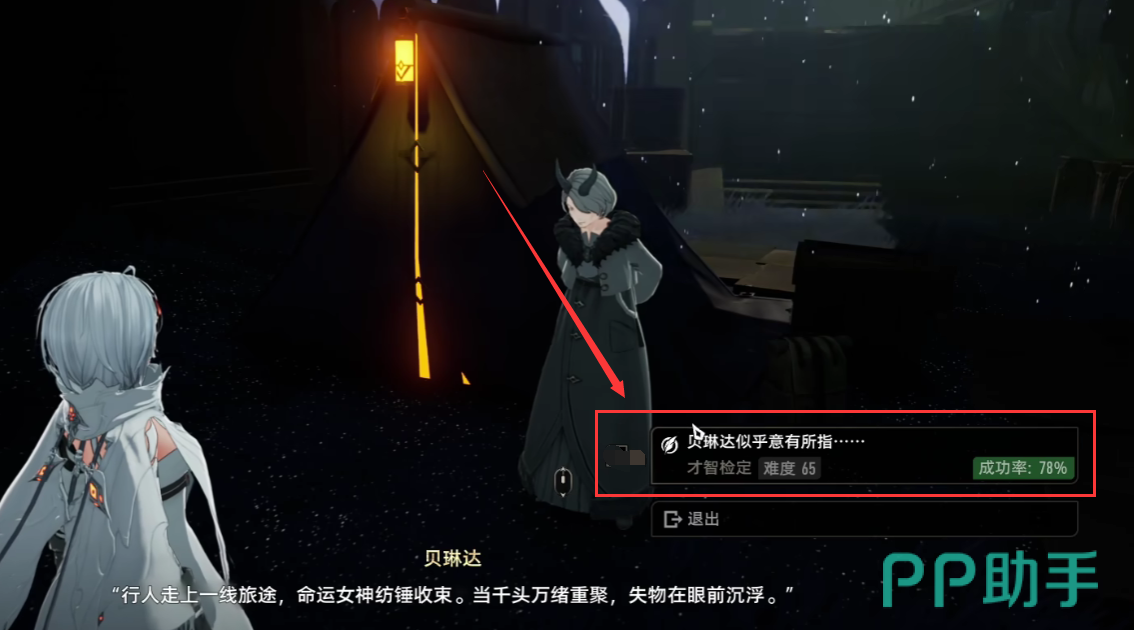 “贝琳达似乎意有所指”的技能鉴定难度是65,玩家只需要让自己的道德水准达到六十点以上,即可获得百分之七十以上的成功率,成功鉴定后,玩家即可说服贝琳达,保证后续任务的进展顺利。