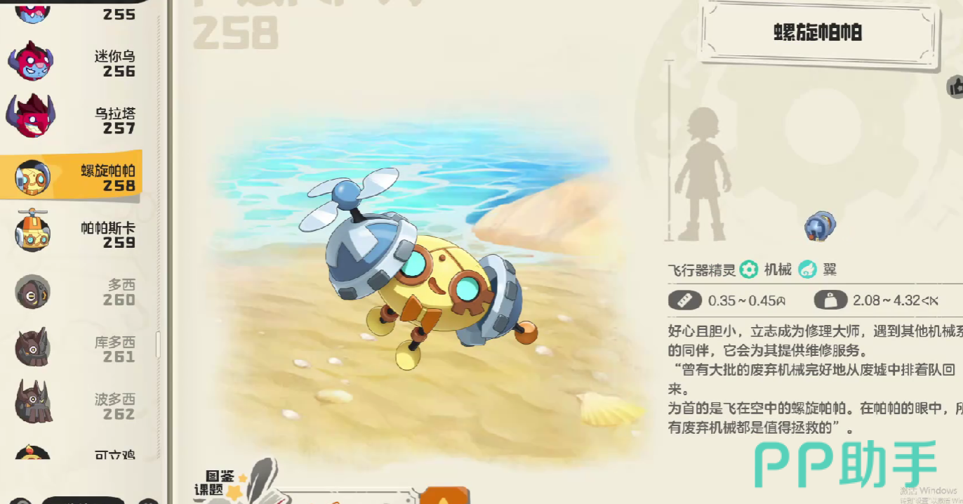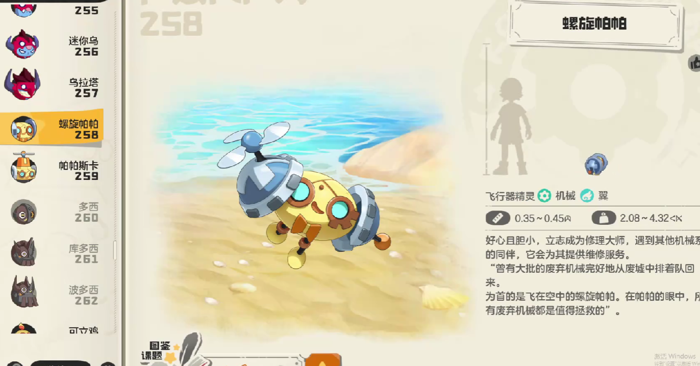 如若玩家在游戏当中想要捕捉它,可以在大世界内前往到“捞船镇”的西侧,在海岸边即可通过“稀兽花种”来抓捕获取初始形态小精灵,当然玩家也可以选择购买螺旋帕帕的精灵蛋,随后直接进入到孵化舱中孵化,即可在周遭增加捕猎成功的概率。