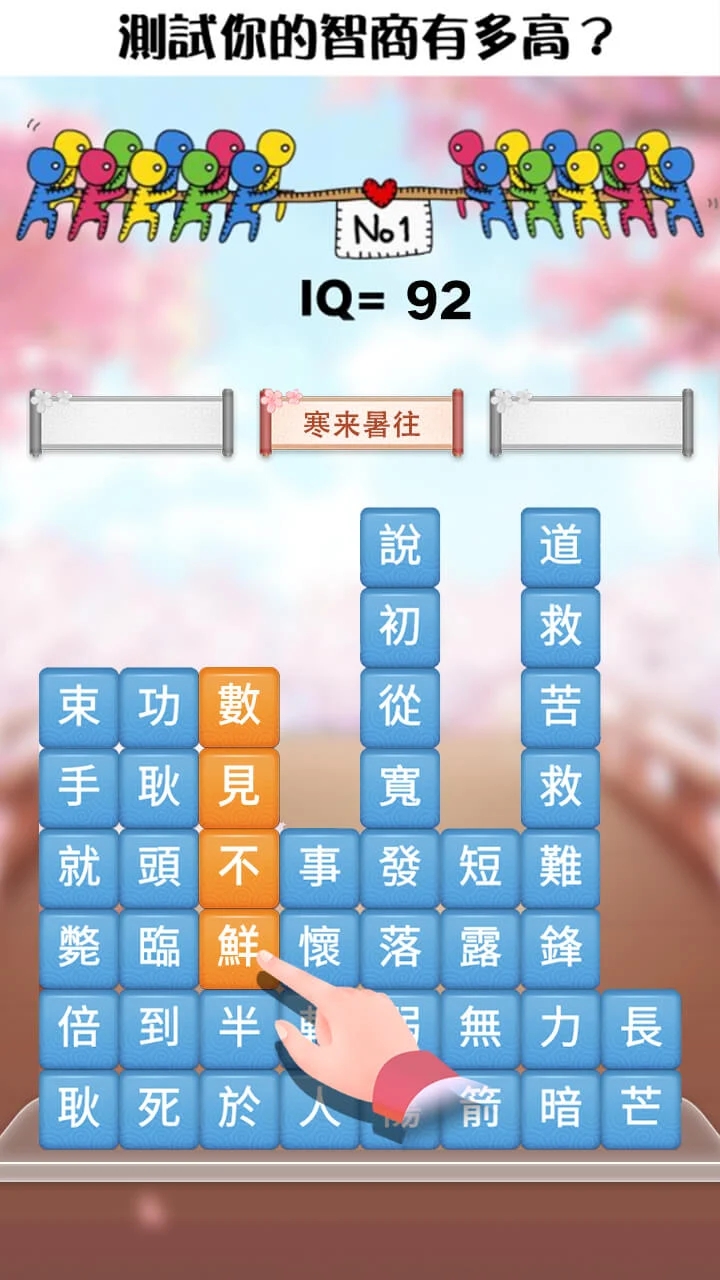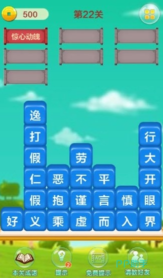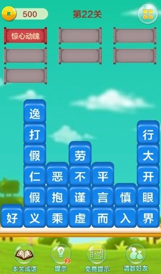晋升等级晋升等级成语接龙小游戏大全覆盖的成语面积还是很广的,玩家可以在闯关过程中对这些成语知识拥有更加深入而全面的了解。四字成语将会分布在画面中的不同区域中,玩家可以根据系统提示,将这些成语巧妙地组合起来。遇到难度比较高的成语关卡时也会有相应的提示信息,帮助大家解决困难,根据成语的题材,在闯关的模式上做出了巨大的革新,让闯关游戏更能够融入到人们的生活中。