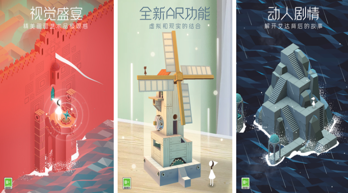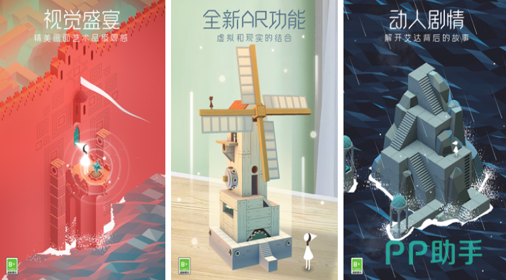 纪念碑谷第一代是小心解谜主题手游中的巅峰之作,具有花哨的美术表现跟多样的操作功能,剧情塑造感人至深又加入了几何学背景的地图,超炫的画风跟萌哒哒角色展现出视觉盛宴,加入了AR互动功能让游戏展现的更为立体,小清新的精彩美术表现让不少画面党深深痴迷,更有一定的解谜以及走迷宫模式可选,意境十足的解谜互动模式更是这款独立APP的独特之处,相信高智商的解谜爱好者都会在游戏中获得别样快感。