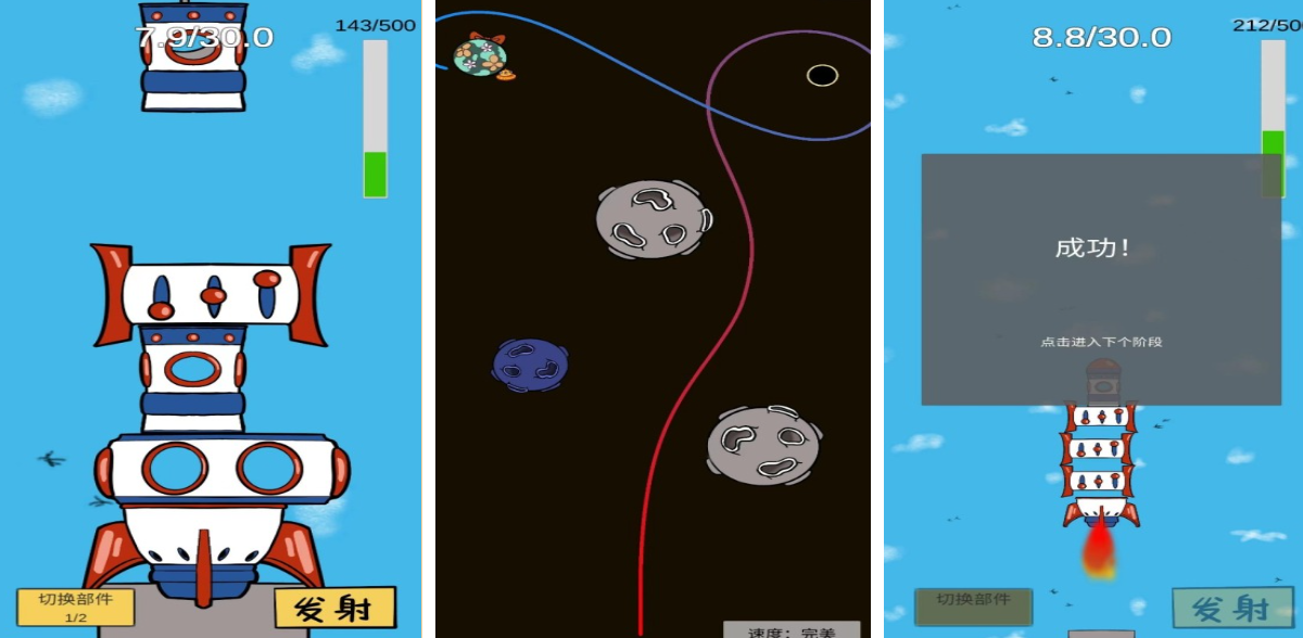 这是款有着建造与飞行双重模式的模拟飞船游戏,首先大家要使用各类零部件利用沙盒性质组合飞船,自由打造飞船的过程会帮助大家了解飞船构造,一切准备就绪就可以点火发射飞船获得快感,太空的背景跟多种多样的着陆星球看上去更精致,飞船的造型手绘可爱有着随意改装的基础性质。