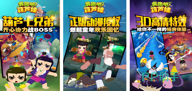 由知名度极高的新葫芦兄弟正版授权,很多小朋友看到七彩葫芦娃在不同的地区疯狂跑酷时总是爱不释手,并愿意参与其中。采用全新的3d引擎所设计,在高效引擎的支持之下,营造出虚幻的视觉效果及物理动作体验,高度还原独特的动漫场景,小伙伴们可自由穿梭在地道,躲避障碍物,享受无比紧张又很刺激的感觉。