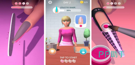美甲以及换装巧妙结合,指甲的形状以及甲片的结构等等都特别多,可以根据顾客的喜好,正确为顾客制作美甲,比如有的顾客特别喜欢方形的指甲,有的却特别喜欢又尖又长的。大家将要以第一人称的视角为更多顾客做好指甲上色以及贴甲片的一系列操作,就连新手玩家都无需担心,跟着新手教程成为真正的美甲大师。