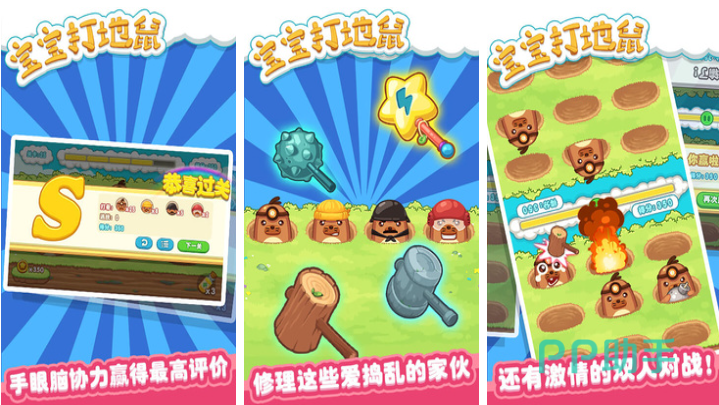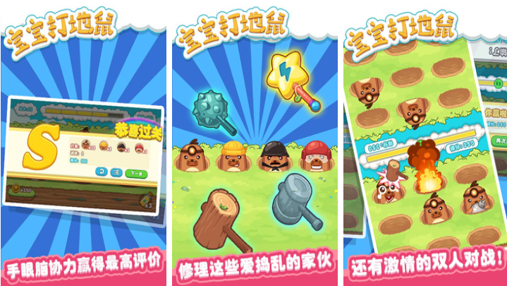 宝宝打地鼠是款锻炼手速跟眼力的多人互动儿童向手游,亲子互动的同屏竞技机制令游戏更为热闹,小地鼠的造型生动并且被揍的表情更加滑稽,闯关模式也很耐玩有着超多小地鼠等待你胖揍一顿,萌系的UI结合佛系的点触式操作更受欢迎,游戏也提供了超多的技能跟打地鼠的道具可选,很自由也很解压的游戏气氛简直是老少皆宜。