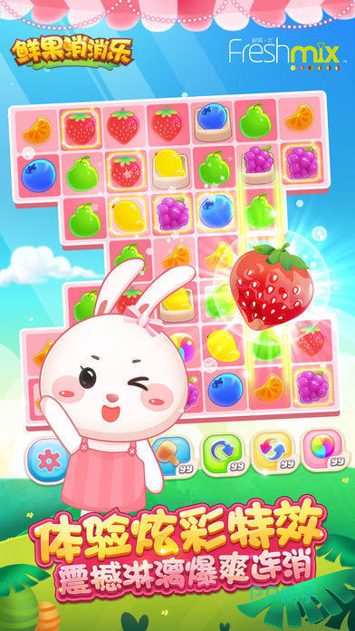 以水果为主题的《鲜果消消乐》带来了极具视觉冲击的消除乐趣。核心规则是将三个相同的水果连成一线即可触发清除效果,搭配炫目的特效与辅助道具如炸弹等,使每一局都充满变化与惊喜,整体节奏明快,非常适合放松心情。