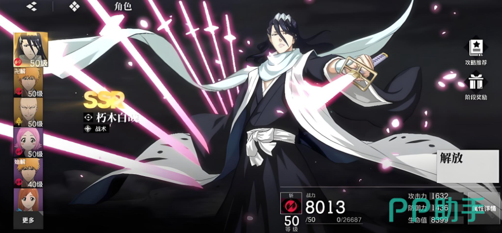 作为斩击体系中的核心输出之一,朽木白哉具备后台持续伤害与团队增益双重能力。其被动技能一可在释放战场技后缩短下一次战技冷却时间,并逐次提升后续战场技的伤害;被动二则在角色处于后台时,提升所有斩系攻击的伤害。他的战场技命中目标后会叠加印记,每层印记均可降低敌方斩系抗性,极大强化队伍整体输出。