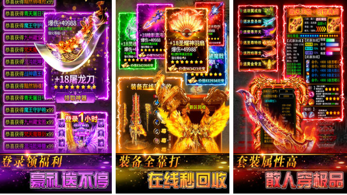 烈火战神是一款全新版本升级的经典风格RPG传奇手游,拥有华丽的全屏技能特效与高爆率的打怪掉宝机制,乐趣十足。各类高级BOSS分布于不同秘境地图,等待玩家组队挑战。游戏高度还原传统传奇核心要素,裁决之杖、麻痹戒指等标志性装备悉数回归。地图场景与人物立绘细节丰富,深受老玩家认可。PVP战斗中亦有机会掉落稀有装备,提升收益体验。