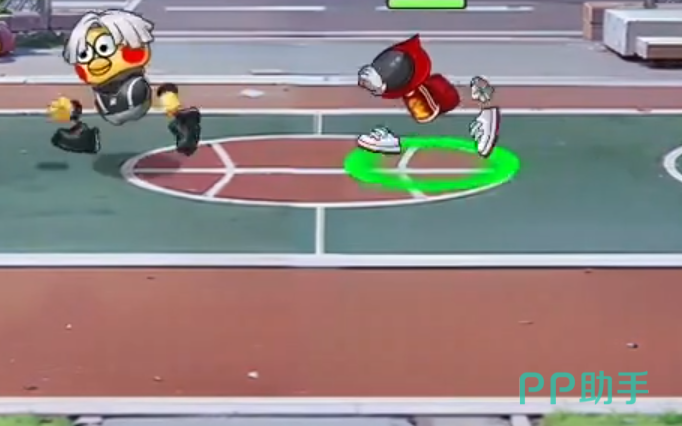 “攻”键是核心交互按钮之一。单次点击可使角色进入运球状态;当接近敌方单位时连续点击,则会发动连击攻击,成功命中后能将对方击倒并夺取其手中篮球。若处于空中且持有球权,此时点击“攻”将触发空中截击技能。此外,当角色控球并靠近篮筐范围时,“攻”键会自动转化为“投”,允许玩家执行投篮操作,若无防守干扰,即可顺利完成得分。