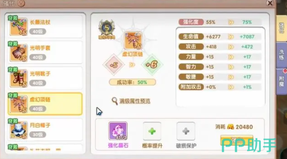 当玩家准备将装备从+1强化至+6时,属于初期低风险阶段。此阶段即使强化失败,装备等级仅会下降一级,不会造成严重后果。为了提高成功率并稳定过渡,建议准备3到5件基础白板装备作为“垫子”,用于消耗失败概率。若连续三次强化失败,应立即切换主装备继续操作。优先顺序上,推荐先对武器和戒指类关键属性装备进行强化,以快速提升输出能力。