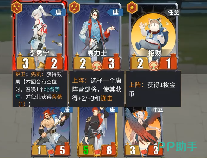 武则天是这一流派的核心驱动角色,其“鼓舞”技能不仅能提升己方士气,还能有效削弱敌方的防御能力,为后续连环打击创造条件。此外,高力士在此阵容中也扮演着重要辅助角色,其所提供的增益状态可使同属唐阵营的单位获得额外连击机会,进一步加快输出频率。