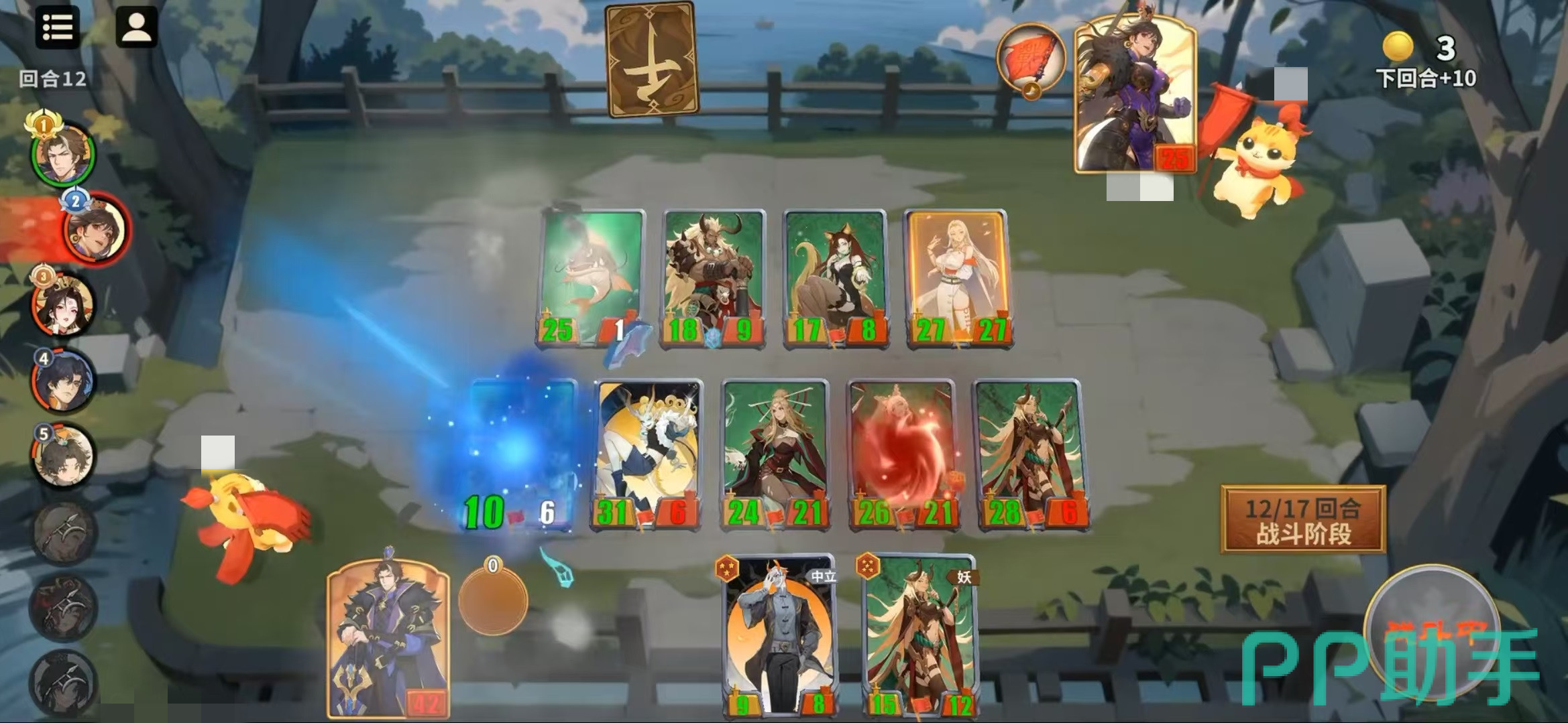进入中期后,5本阶段应重点组建以铁扇公主与白骨夫人为核心的阵容结构;到达6本时,石矶娘娘将成为主力输出与召唤核心。随着战局推进,可在后期替换掉铁扇公主和白骨夫人,转而补充更多高频次出场的召唤单位。其他关键卡牌包括红孩儿、牛魔王、石矶、白象精等。其中,铁扇公主负责提供团队增益,石矶与白骨夫人专注于强化召唤物属性,而牛魔王与白象精则依靠遗技频繁召唤单位入场,进一步巩固妖族“铺场压制”的战术风格。
