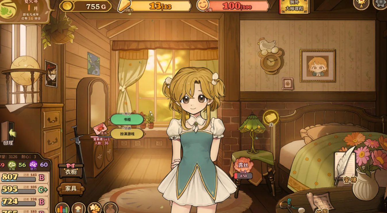 作为一款以养成为主的游戏,玩家每日对女儿的行程安排,将会直接决定女儿基础属性,从而间接性决定结局内容。