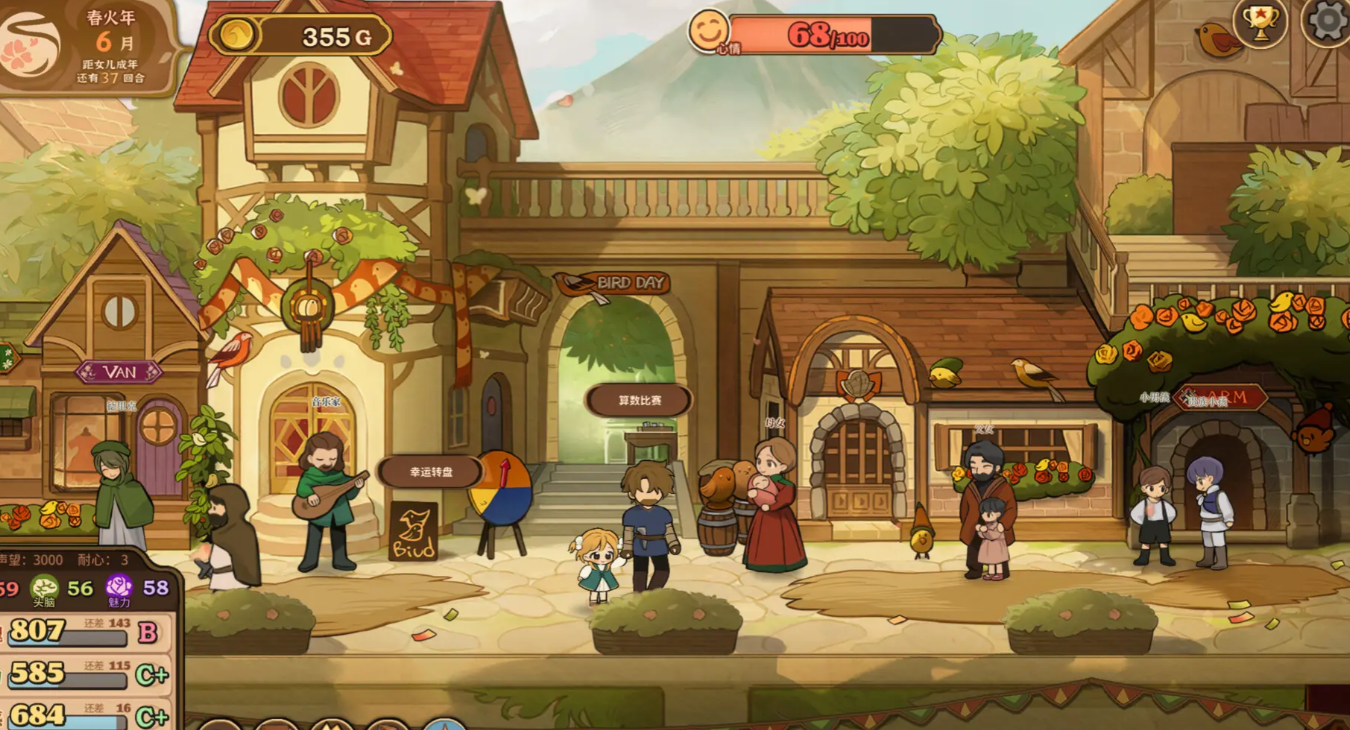 在游戏当中,玩家将要来到一个名为火山国的地区,在火山国当中,不仅有着骑士精神文明的崇尚,还盛行炼金术以及魔法,而玩家作为独自带女儿前往火山国居住的居民,需要合理安排女儿的课程学习生活,以及娱乐项目。