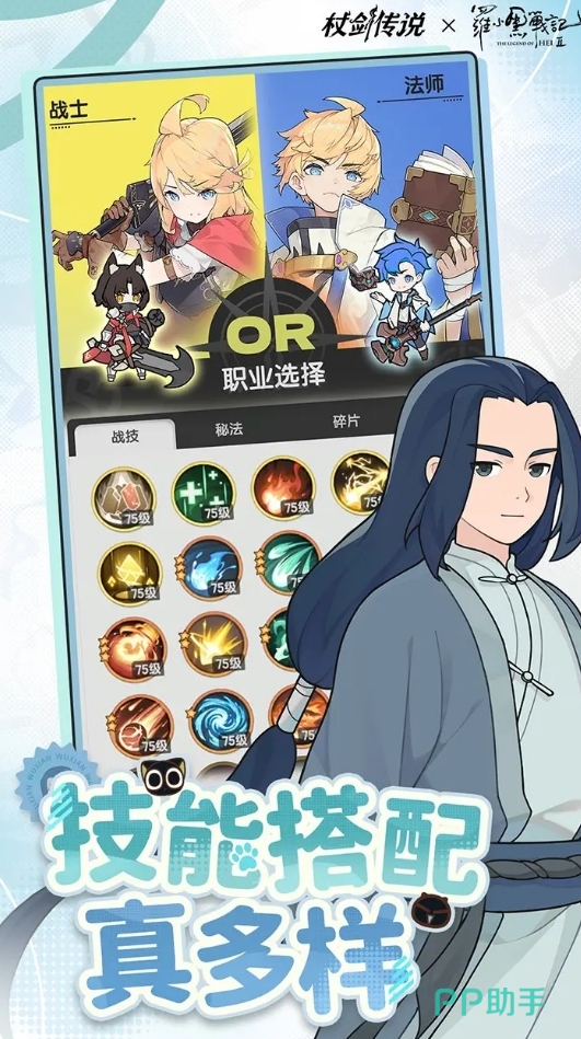 《杖剑传说》构建了一个融合魔法与利刃的幻想大陆。玩家可在开局时选择使用法杖的法师职业或执剑而战的近战职业,每条路线均有完整的发展体系。达到一定等级后,还可从多个进阶分支中自由选择发展方向。技能搭配系统允许玩家根据战术需求自定义组合,打造个性化战斗风格。挂机收益机制也让日常资源积累更加轻松高效。