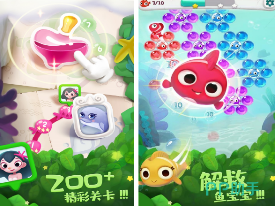 经典泡泡龙玩法再现移动端,本作包含超过200个精心设计的关卡,主打消除类益智挑战。玩家将踏上一段海底冒险旅程,与美人鱼一同解救被困的海洋生物。通过发射彩色泡泡进行匹配消除,成功释放被封印在泡泡中的动物即可完成任务。绚丽的画面表现和多样化的关卡机制,带来持续不断的闯关乐趣。