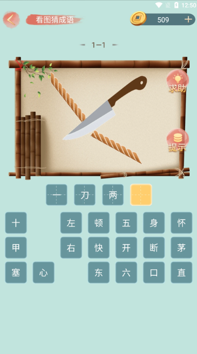 采用晋升式玩法,从“秀才”起步,通过不断答题逐步升至“皇帝”等级。每一关会展示若干被打乱顺序并带有空缺的成语,玩家需从底部给出的单字中挑选正确选项填入空白处。若遇到困难,可使用提示功能获取辅助线索。通关后还会显示该成语的详细解释,帮助玩家边玩边学,持续丰富语言储备。