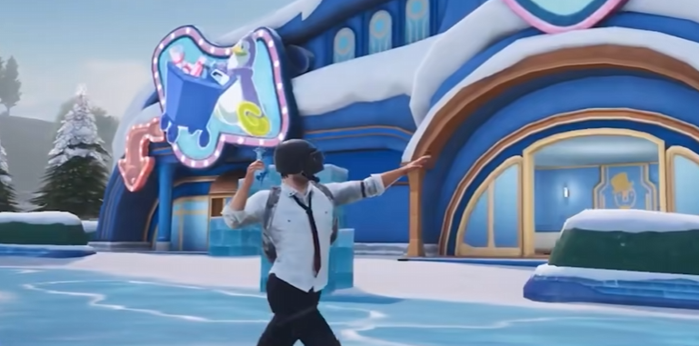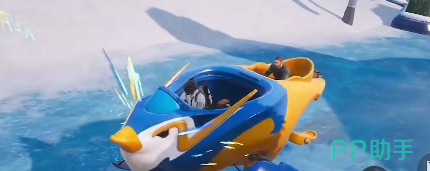 本版本推出多项冰雪主题载具与战术道具。其中,企鹅雪橇车作为四人可乘坐的两栖交通工具,支持团队协作加速,并能投掷雪球攻击对手,兼具移动与战斗功能。
