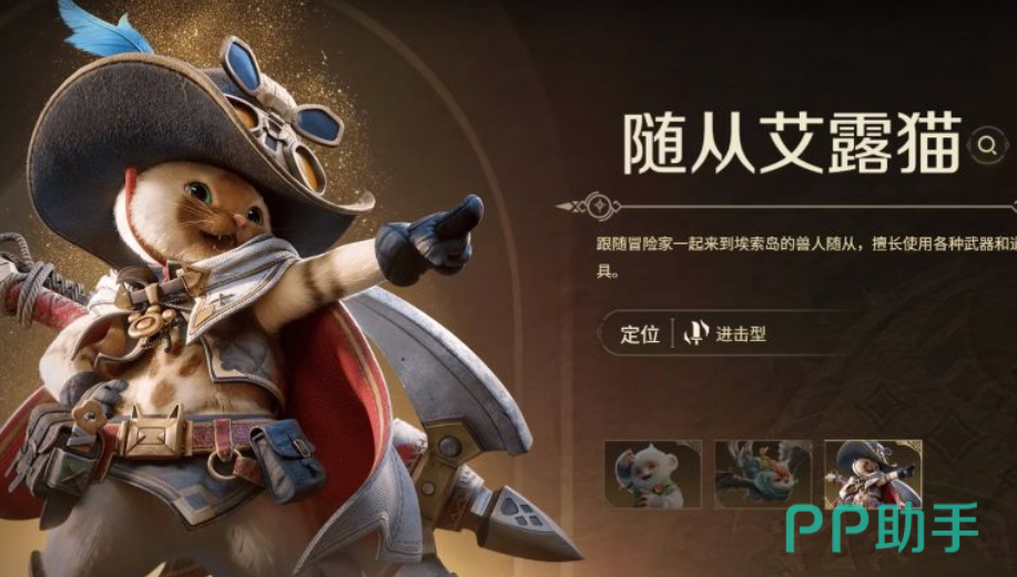 虽然游戏中没有传统意义上的“宠物”称呼,但其内置了一套完善的随从系统,为玩家提供多样化的协作单位选择。当玩家开启相关任务后,可从三种不同类型的随从中挑选其一进行搭配。每位随从都具备独特的技能定位和战斗风格,合理选用能显著提升整体作战效率。首推的是艾露猫,这一经典形象不仅陪伴感十足,在实战中更是攻防兼备,既能执行近战牵制,也能远程输出支援,是多数猎人的首选搭档。