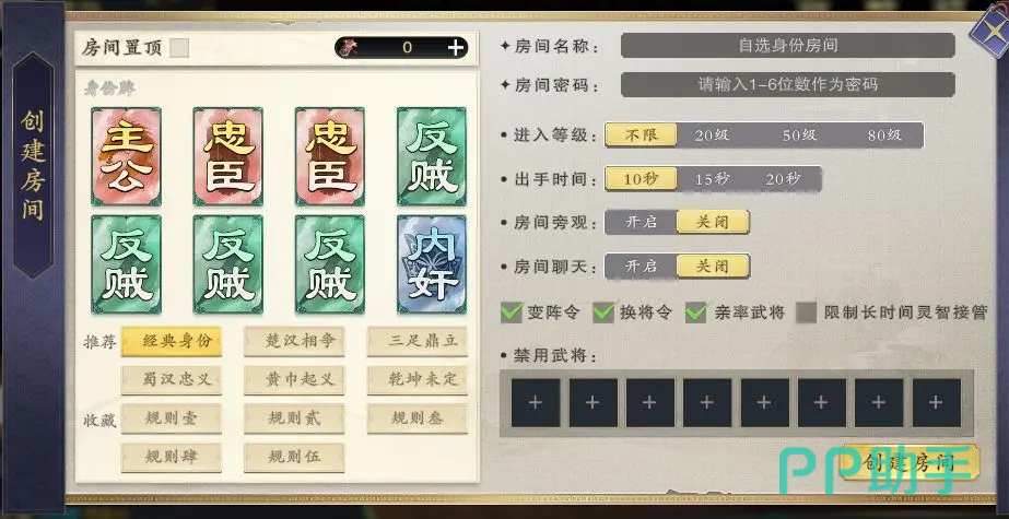 该模式最大的亮点在于规则的全面自定义功能。房主可根据实际需求灵活调整参与人数、身份分配方式,甚至能手动指定每位玩家的身份角色,例如主攻、反贼、忠臣或内奸,从而实现更具针对性的战略布局。