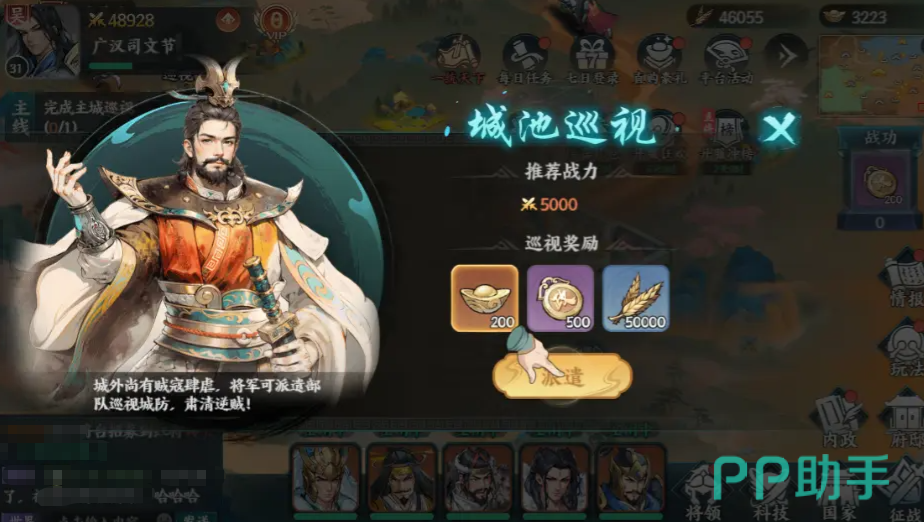 巡视是指派遣将领往需要城池,然后进行战斗,可以获得对印奖励。