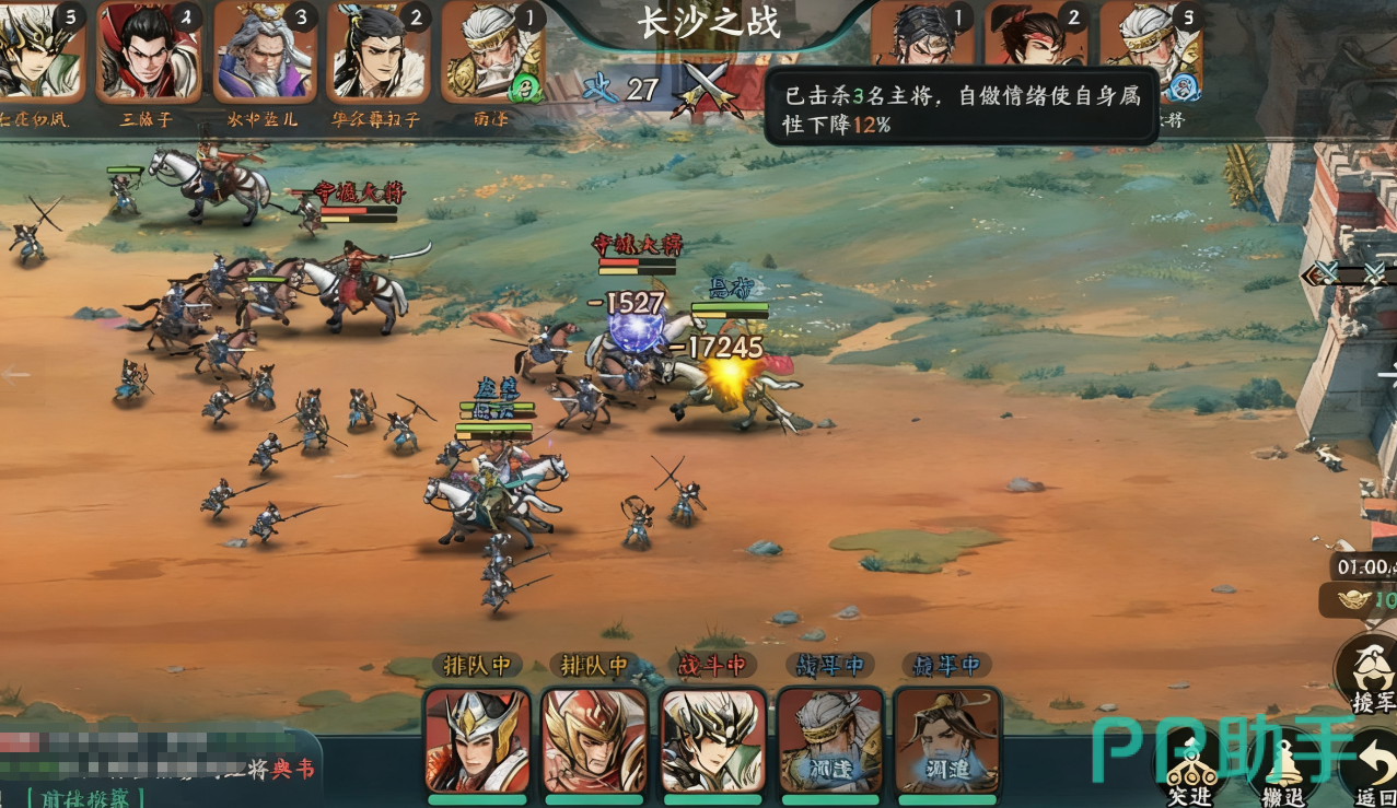 斩杀敌将之后会叠加连斩的减益效果,会降低百分比属性。