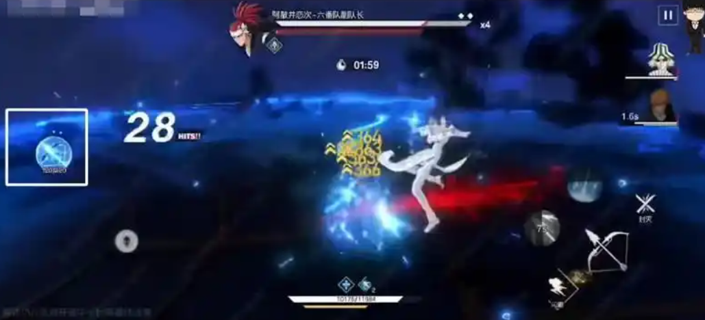 境界刀命中的战斗系统,玩家首先要知道战斗时ui界面上最中间下方位置显示的是角色的永久buff或者是限时buff,这些buff有一些是角色本身的,若是更换角色的话,那buff就会直接消失,有些buff则是能够互通的,不管大家如何切换角色,这些buff都会在在瓶中出现,白色的长条为角色的血量,黄色的长条则是角色的能量跳,左边位置显示的是特使技能以及角色的万解以及万解后招式所产生的变化。