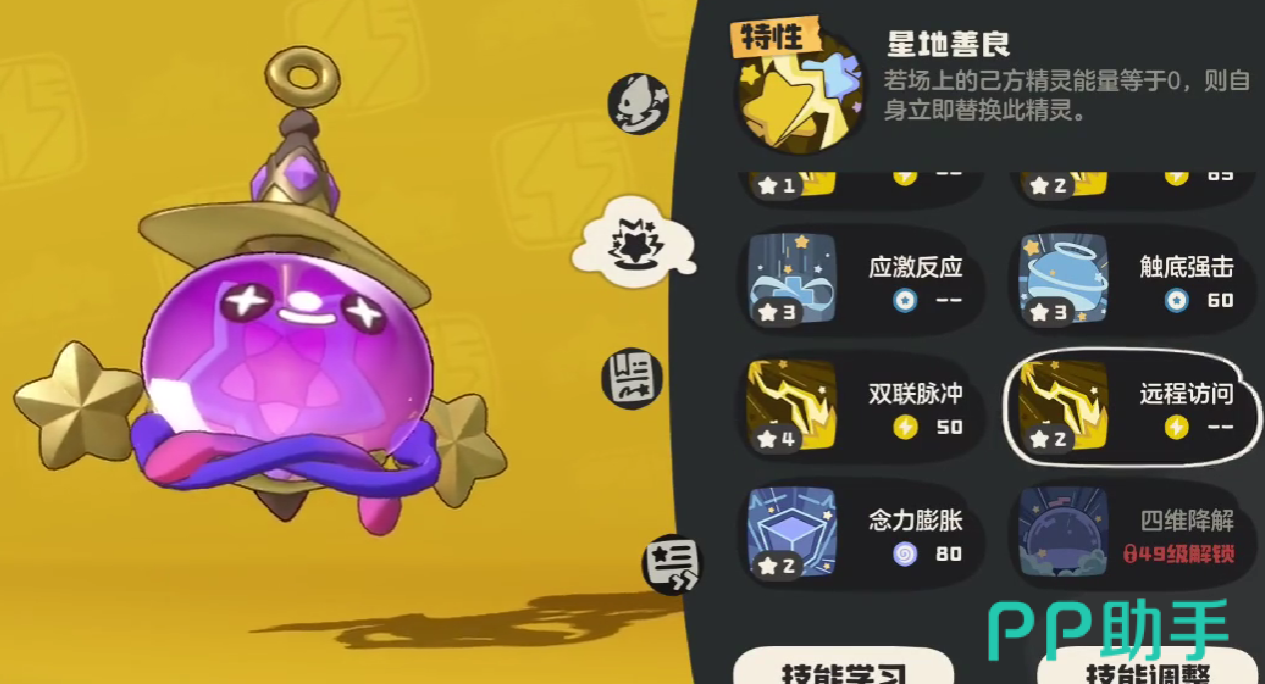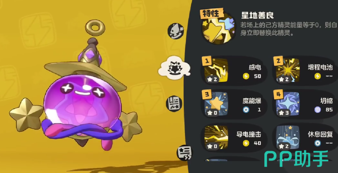 其核心特性为“心地善良”,当己方场上的精灵能量归零时,小皮球可立即自动替换上场。这一机制使其成为团队续航的关键角色,能够在关键时刻挽救战局,赋予队友重新参战的机会。