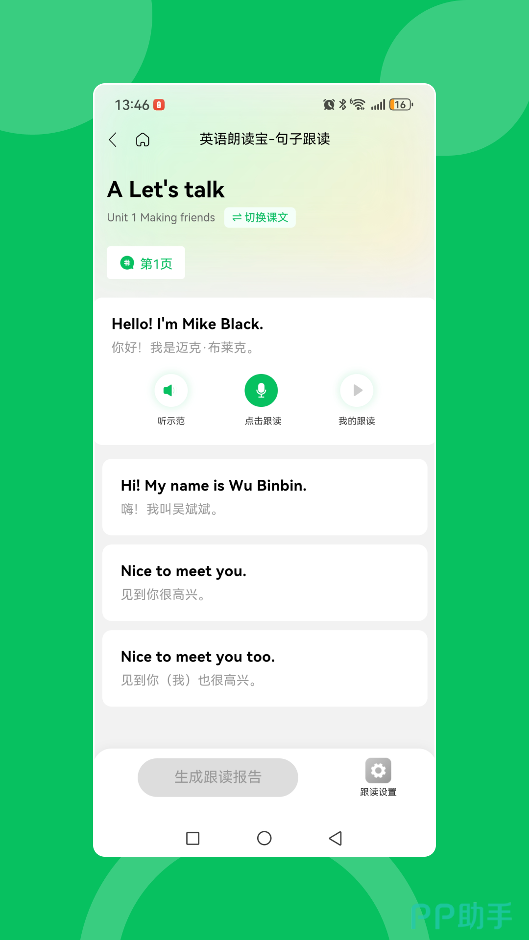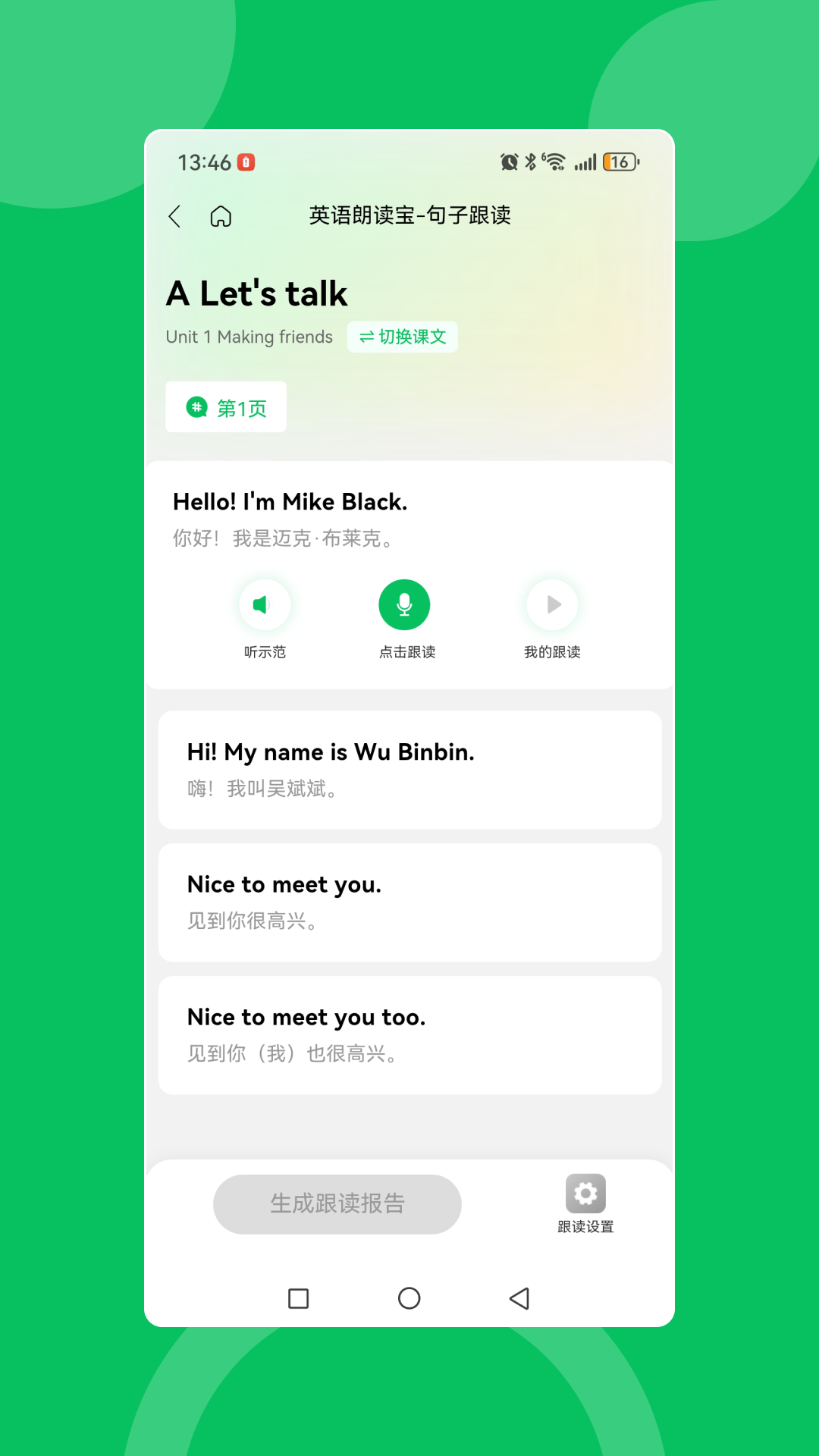 顾名思义,其所有内容均与人教版七年级上册英语教材完全是同步的,软件支持单词、句子、课文的逐句读,轻点就能播放纯正原声发音,语速可自由调节,满足不同基础学生的跟读需求,基础薄弱的学生可放慢语速逐音模仿,基础较好的学生则能以正常语速锻炼流利度。此外,软件还整合了单词巩固、语法要点讲解模块,跟读单词后可直接进行听写练习