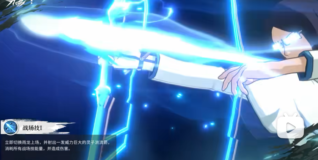 切换至石田雨龙上场时可触发首个战场技,他会朝前方释放一道高威力的灵子洪流箭。该技能将消耗当前全部已积累的战场技能量,并带来高额爆发伤害,适合用于清场或集中打击强敌。