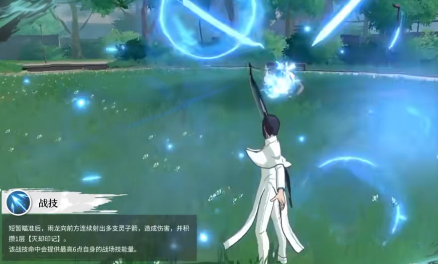 使用战技后,石田雨龙会向前方发射多支灵子箭矢,对敌人造成范围伤害。此技能不仅能施加一层灭却印记,还可最高获得6点战场技能量,是快速积攒能量的重要手段之一。