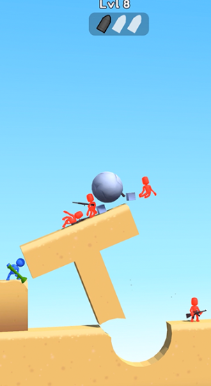 玩法直观易上手,核心就是利用有限的弹药发射火箭弹消灭敌人。每一关敌人的分布位置不同,需要调整射击角度和力度才能精准命中。游戏提供多种功能性道具,合理使用能显著提升通关效率。角色拥有多个可解锁皮肤,每种皮肤附带独特视觉特效。随着关卡深入,还能获取新式武器,如炸弹、手榴弹等,丰富战斗策略。