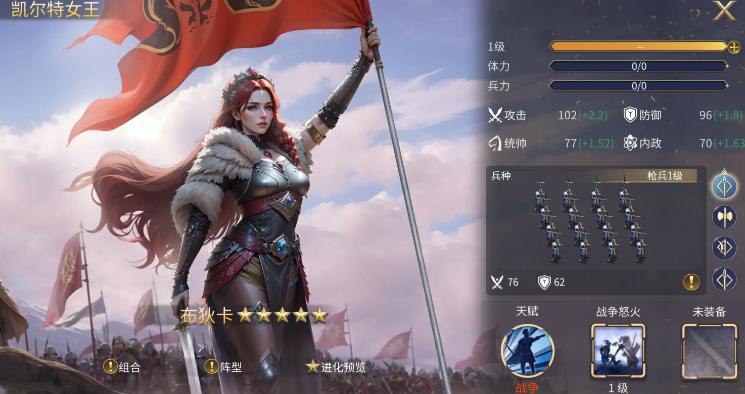布狄卡虽为单体增益型英雄,但实战表现极为亮眼。她能提升自身50%移动速度和30%伤害输出,且无兵种限制,全兵种均可受益。此外,开场可吸引最近一队敌方骑兵锁定自身,起到保护队友的作用。高速接近、高效输出与吸引火力三位一体,使其成为突袭战术中的理想人选。
