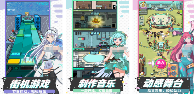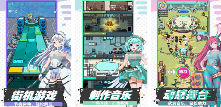 缪斯音街围绕音乐主题打造,创新结合音游与模拟经营玩法,构建出一个富有艺术气息的城市空间。游戏初期只有一条简陋街道,玩家需要招募乐手、升级设施,逐步提升街区人气与规模,最终将其发展为热闹非凡的音乐圣地。