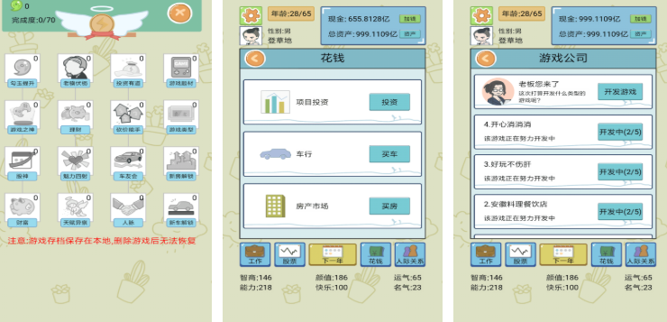 中国式人生是一款高度拟真的模拟人生游戏,完整呈现从出生到老去的生命历程。初始设定因家庭背景不同而有所差异,有的出身平凡,有的家境优越,这直接影响成长路径的难易程度。每一个选择都会引发连锁反应,塑造独一无二的人生轨迹,带来强烈的现实代入体验。