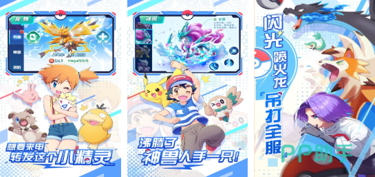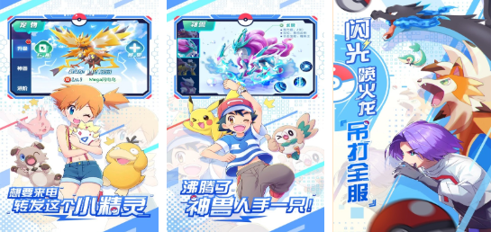 这是一款融合初代宝可梦元素的卡牌对战手游,战斗特效华丽,粒子效果细腻。游戏中完整呈现宝可梦从初始形态到最终形态的进化全过程,动画制作精良,各阶段外形与技能均有显著差异,视觉冲击力强。副本与竞技场玩法区分明显,玩家可根据区域设定灵活调整策略,提升探索自由度。