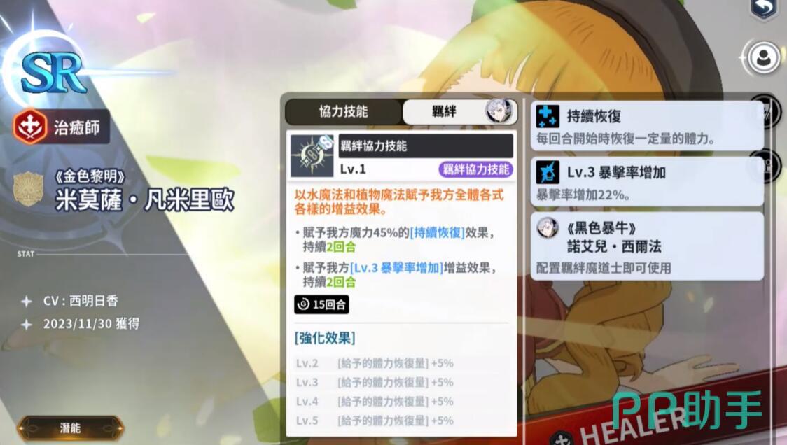 治疗者具备续航保障等等作用,在战斗的时候,它能够有效地恢复队友的血量,也能够提供生存保障。借助复活的技能,能够改变所有的战局,这里小编觉得可以尝试米莫萨,他作为奶妈,能够单体救急,也能够快速的让群体恢复。