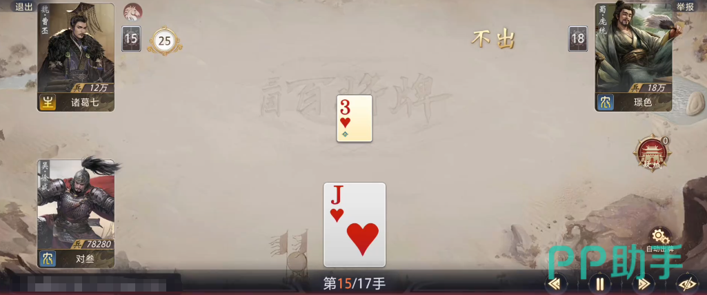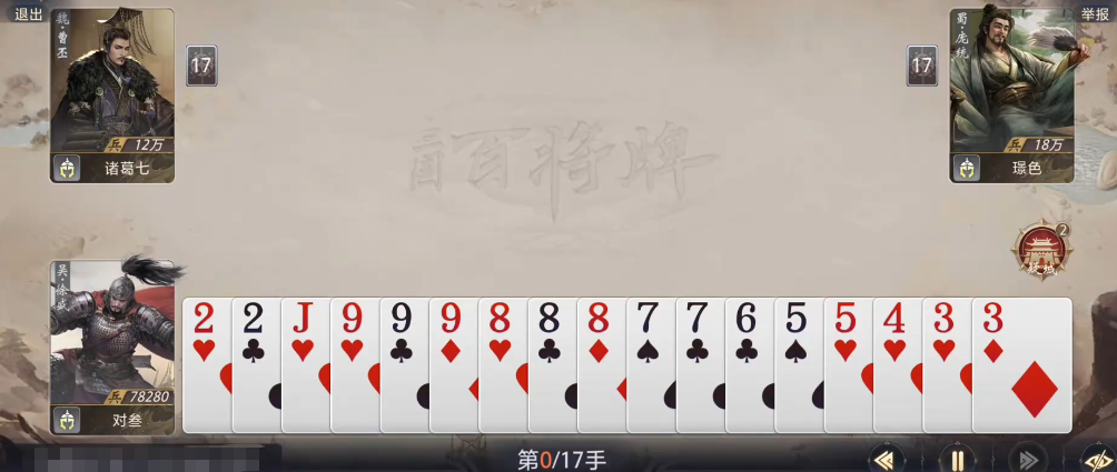 基本也到了一场对局结束的阶段,如果大家手中的时候卡牌只剩两张的话,用他的这个技能也可以抑制敌方的主牌,此时基本上就可以断定大家的胜局了,所以如果用徐盛的话,一般他在后期带来的优势会更大一些,如果用徐盛用的好的话情况下其实也是有一些赌的成分,大家也可以看到如果大家抢了地主的话,有徐盛可能危险性比较大,没有抢地主的话,只要大家手中有足够多的卡牌进行连对,其实徐盛的效果也是不错的。
