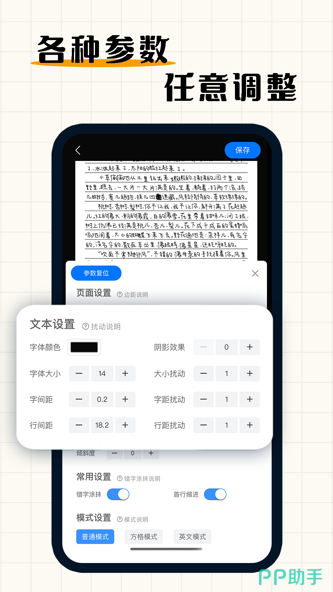 手写模拟器主打模拟真实手写效果,支持多字体、多纸张模板选择,不仅能生成个性签名,还能模拟手写稿,输入姓名生成签名还能设置签名的倾斜角度、间距,让签名更具真实感。此外,软件支持参数精细化设置,可调整页面上下左右边距、展示模式,一键无水印保存签名或手写稿到手机相册,方便后续使用。