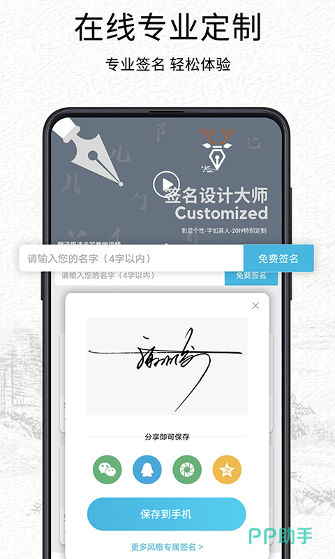 这款软件堪称个性化设计的神器,这里有著名设计师手工设计签名,让你轻松get彰显自己气质的艺术签名。它提供了丰富多样的选项,从爱情签名、哲理签名到校园签名,各种类型一应俱全。而且,它的定制功能超强大,你只要提出需求,就能收获专属于自己的独特签名,社交、商务场合用起来都超亮眼。