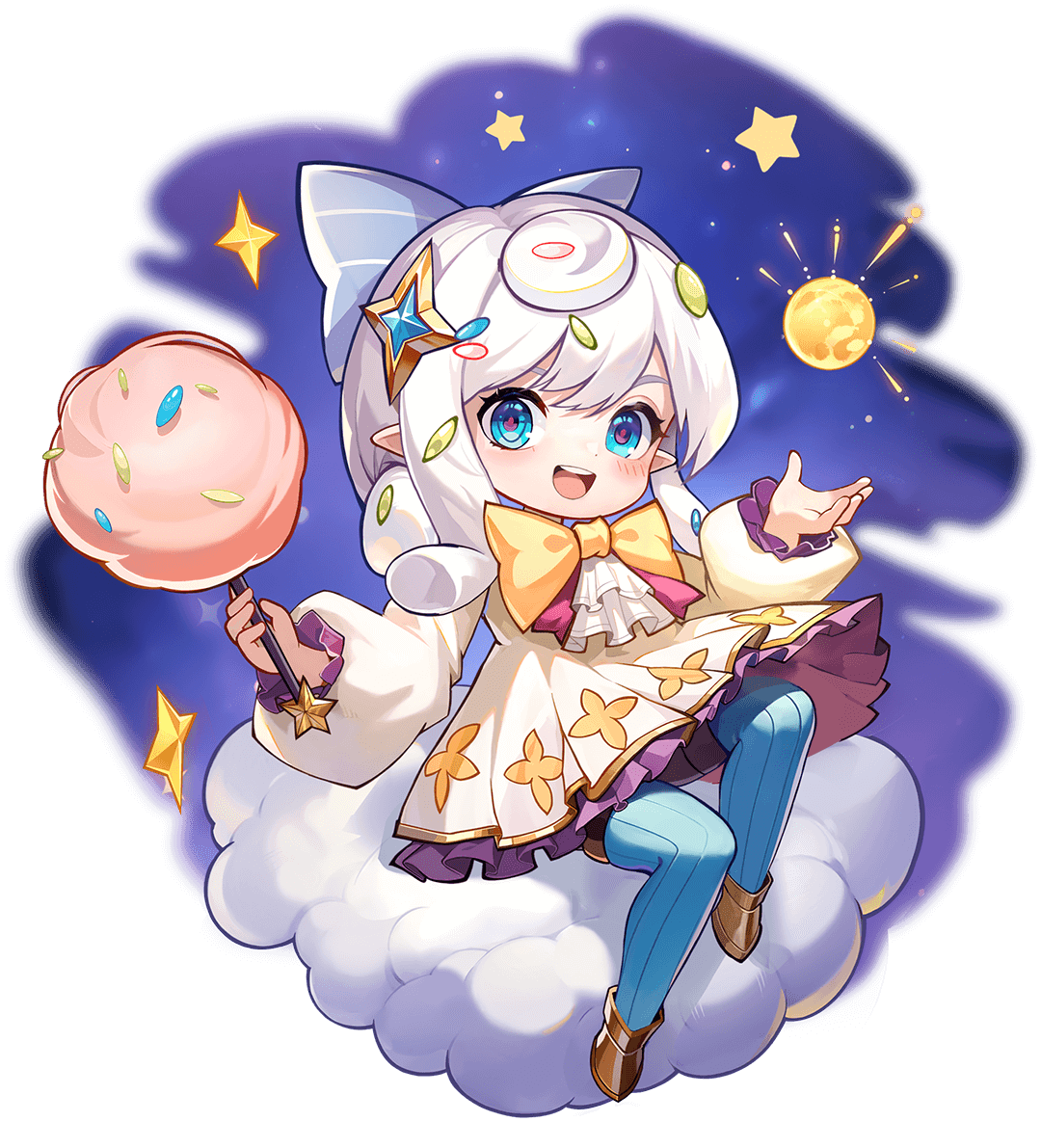 她始终相信天上的云是甜的,像棉花糖般温柔可亲,蕴含着治愈与希望的力量。作为一名水属性辅助,她能够操控云雾与露珠的能量,为队友提供持续的生命回复效果,并具备清除负面状态的能力,使队伍在长时间作战中保持稳定输出与生存能力。